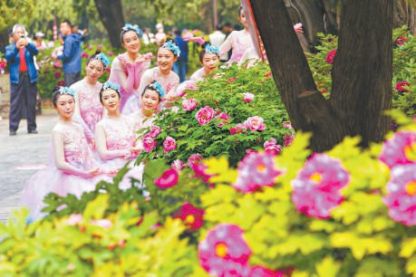 澳门博彩送彩金白菜“牡丹路”位于公园前山,沿北京中轴线两侧对称延展。面前,各色牡丹已纪律绽放,连绵花海与近处的绮望楼、高处的万春亭等象征性古建同框,红墙为纸、花影为墨,勾画出极具视觉冲击力的春日胜景。旅客行至此处,唾手一拍便能定格“古风大片”,捕捉牡丹花瓣上的光影,定格古建飞檐下一抹雍容的国色。